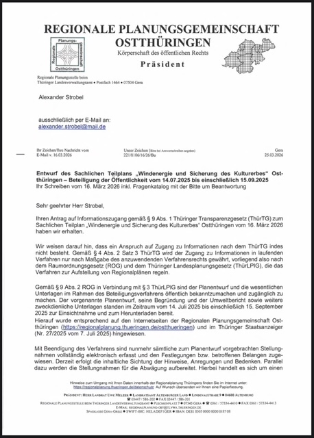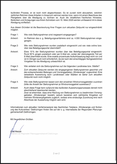 Im Rahmen des Beteiligungsverfahrens sind nach Auskunft der Regionalen Planungsgemeinschaft Ostthüringen mehr als 4.550 Stellungnahmen eingegangen (Unterschriftenlisten nicht eingerechnet).